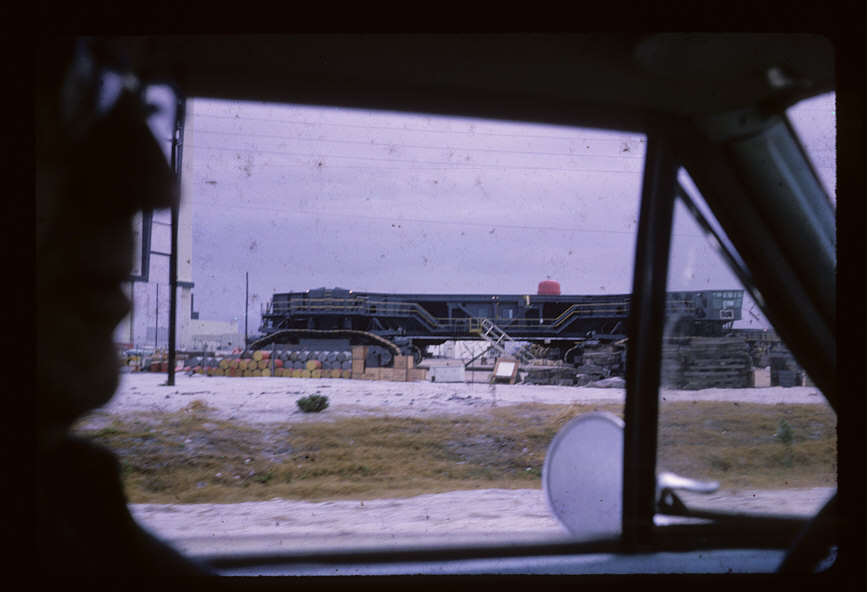A crawler-transporter, apparently complete. Looking closely, the side of the VAB is just visible on the left under my grandfather’s nose, and another crawler-transporter is visible just behind this one, next to the inclined edge of the window.