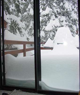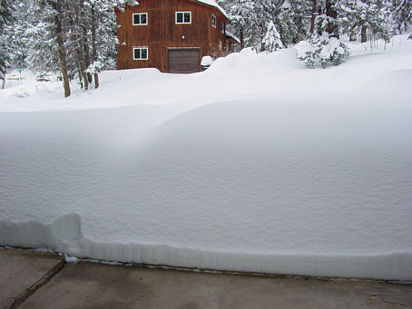 Stephen Green thinks he got snow this weekend. Try this...this is what greeted me when I looked out my back patio door this morning -- that Tikal pyramid thing on the right is the grill, which I had been using in t-shirt and shorts Saturday afternoon: The view from the garage was just as white -- that drift is right around 3ft high: But, it's nothing that three hours of backbreaking work with a shovel can't fix: And at least I had a nice view to admire while shoveling: Posted by T.L. James on April 11, 2005 10:46 AM