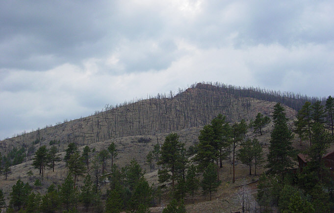 Of course, the price we pay for living in such picturesque surroundings is the risk of fire. This is either part of the area burned by the 2000 High Meadows Fire or the northern extent of the 2002 Hayman Fire.